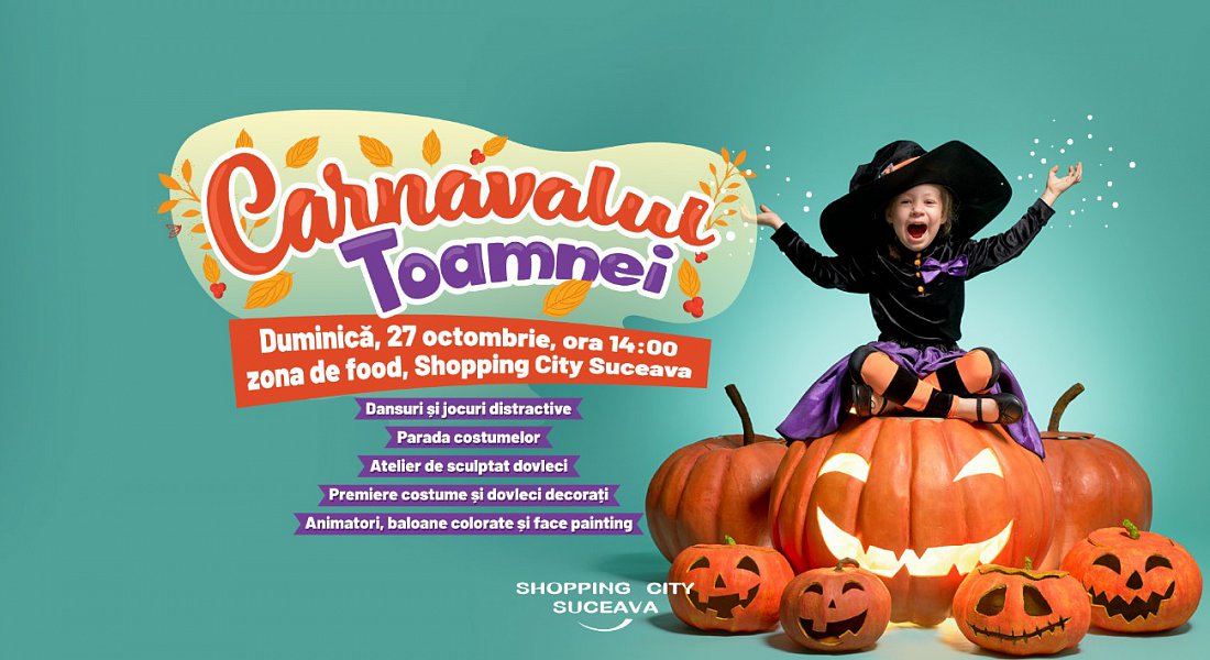 Duminică, 27 octombrie, de la ora 14.00, Shopping City Suceava invită toți copiii la Carnavalul toamnei, cea mai distractivă petrecere din an dedicată copiilor și costumelor de toamnă.