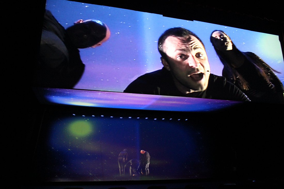 Actorii care dau viaţă numeroaselor personaje care se perindă prin decorul virtual şi multidimensional, care îmbină teatrul cu cinematografia, într-o simbioză impresionantă, sunt Cătălin Mîndru, Cosmin Panaite, Clara Popadiuc şi Diana Lazăr, care au demonstrat că au talent cu carul, iar în spatele tinereţii şi frumuseţii lor se ascunde foarte multă experienţă – de viaţă şi de teatru.