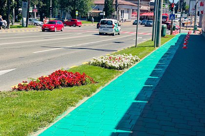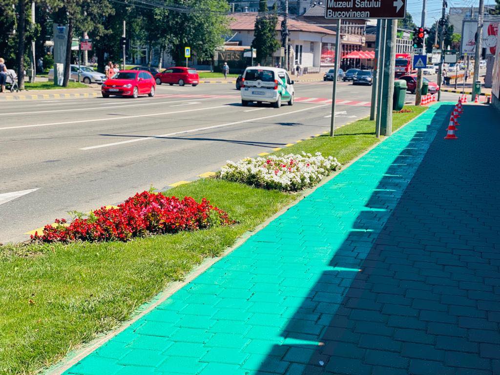 Piste de biciclete marcate integral cu vopsea verde, în Suceava