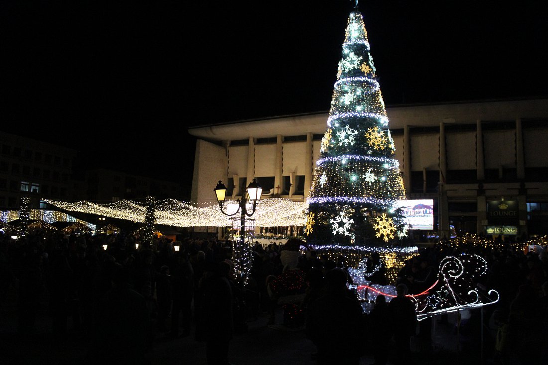 Festivitatea de deschidere a luminilor în bradul de Crăciun din centrul Sucevei a atras o mulțime de spectatori pe esplanada din faţa Casei de Cultură, unde au avut loc și spectacolele dedicate Zilei Bucovinei.