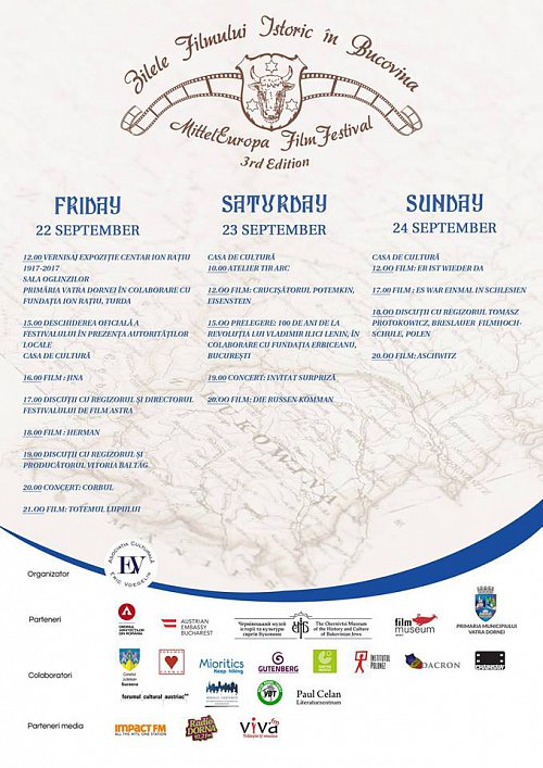 În zilele de 22-24 septembrie se va desfășura la Vatra Dornei cea de a III-a ediție a festivalului Zilele Filmului Istoric în Bucovina – MittelEuropa Film Festival. Prezentatorul festivalului internațional Zilele Filmului Istoric în Bucovina – MittelEuropa FilmFestival 2017 este Andrei Bărbat, absolvent al University of Hertfordshire - School of Humanities, UK (2014-2017), director și producător al filmului “Am doar 18 ani” (2014) și “Pentru România” (2016), Marea Britanie.
